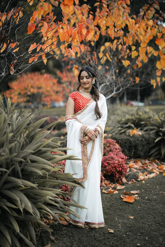 Ivory Machine Embroidered Georgette Saree for Bridesmaid