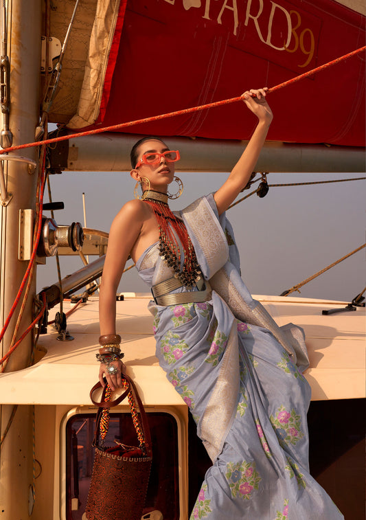 Light Blue Kiki Rangkat Handloom Silk Saree