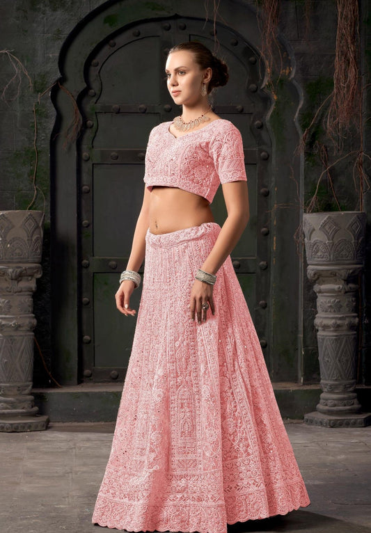 Light Pink Zarkan Embroidery Net Wedding Guest Lehenga