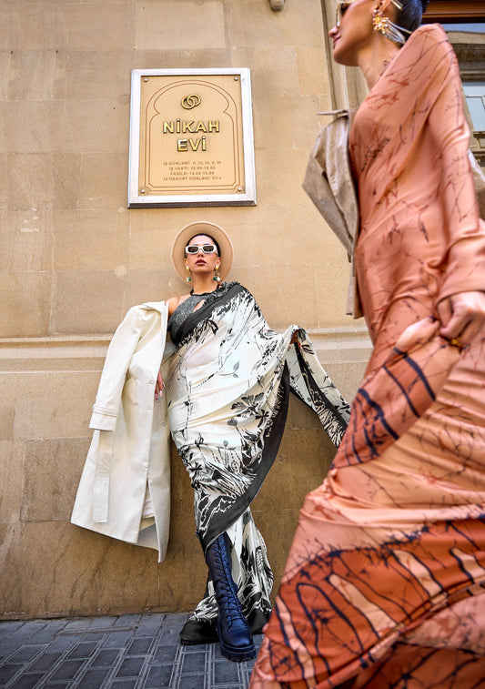 Off white Korsa Georgette Pure Khadi Nylon saree