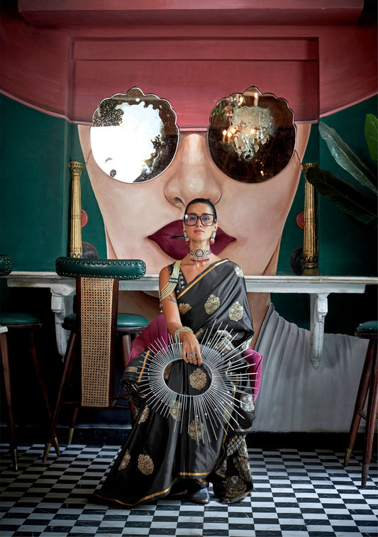 Black Kanthkala Topaz Pure Satin Handloom SareeRegular price £31.03Regular priceUnit price / per£78.11Sale price £31.03Sale