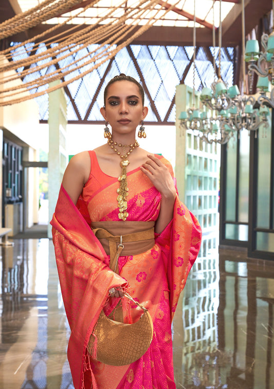 Orange Kandini Silk Handloom Woven Saree