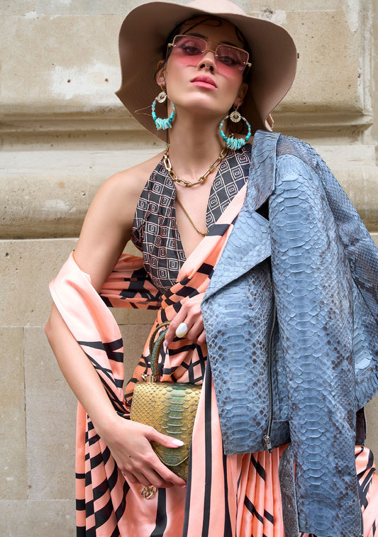 Orange Klutch Japan Satin Print Saree