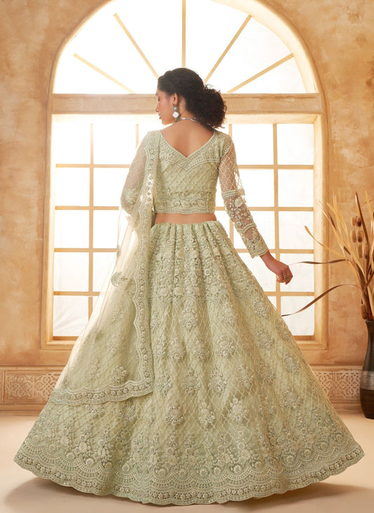 Pista Green Heavy Cording Embroidered Net Reception Lehenga Choli