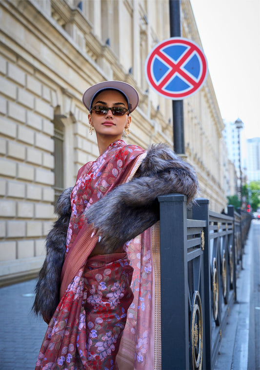Purple Floral Klay Print Satin Organza Saree
