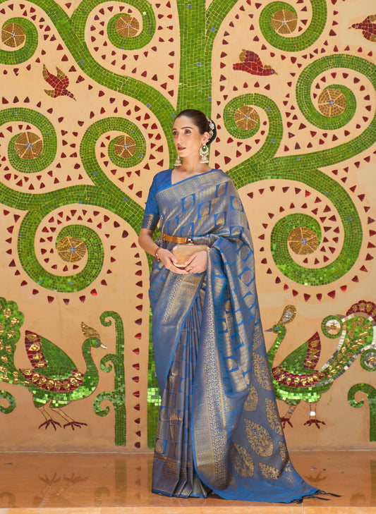 Blue Karzoe Silk Pure Chaap Handloom Saree