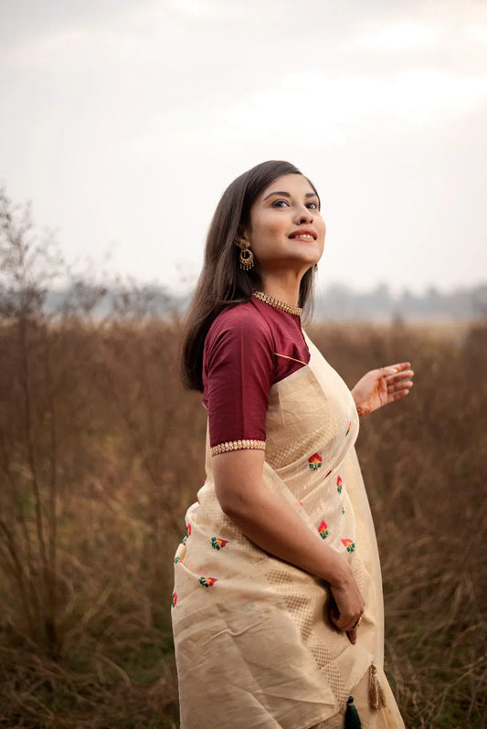 Vrindavan Cream Cotton Silk Handloom saree