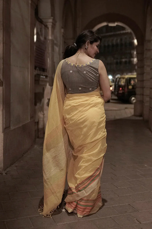 Warm Grey Beige - Handwoven - Silk Saree