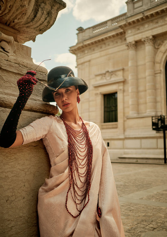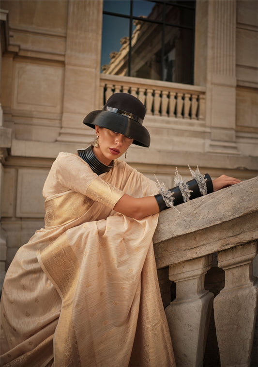Cream Karshini Silk Tissue Zari Handloom Saree