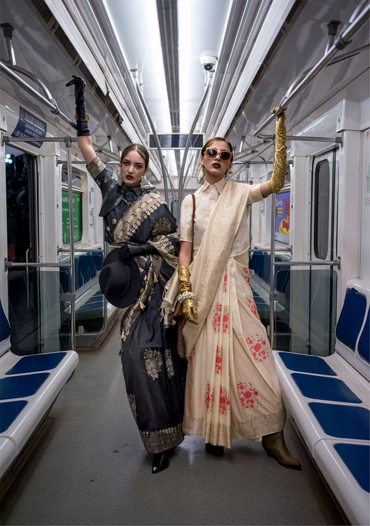 Cream Rajmata Tissue Silk Saree with Zari weaving