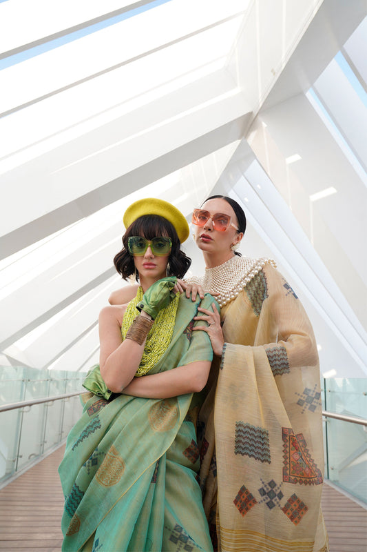 Cream Kroma Zari Tissue handwoven Printed Silk Saree