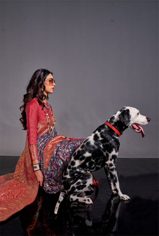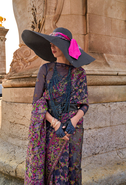Dark Blue Kashifa Silk Kashmir Modal Handloom Saree