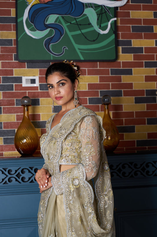Dusty Pink and Green Lehenga Choli for Mehendi