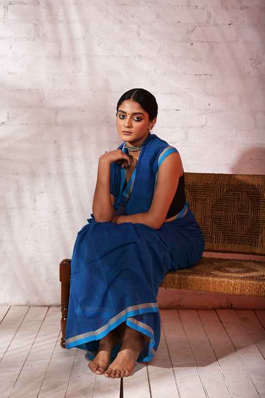 Electric Blue Handloom Pure Silk Banarsi Tanchoi Saree