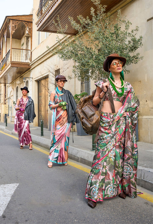 Flora Green Kolombus Satin Georgette Printed Saree