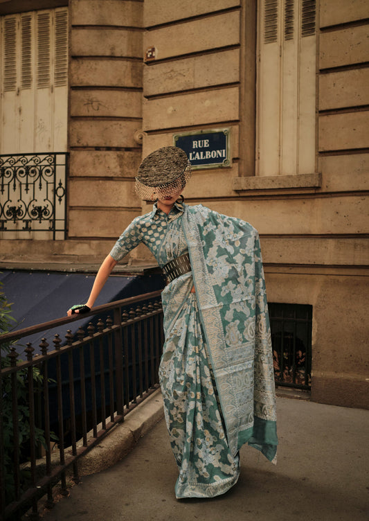 Green Kaizaa Silk Zari Base Chaap Handloom Saree