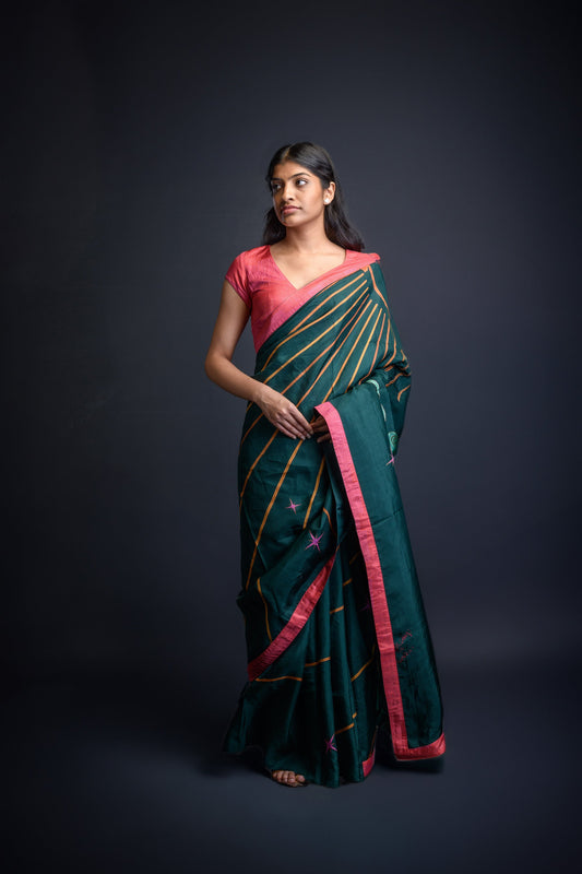 Green Zari Embroidered Uppada Silk Roshan Saree