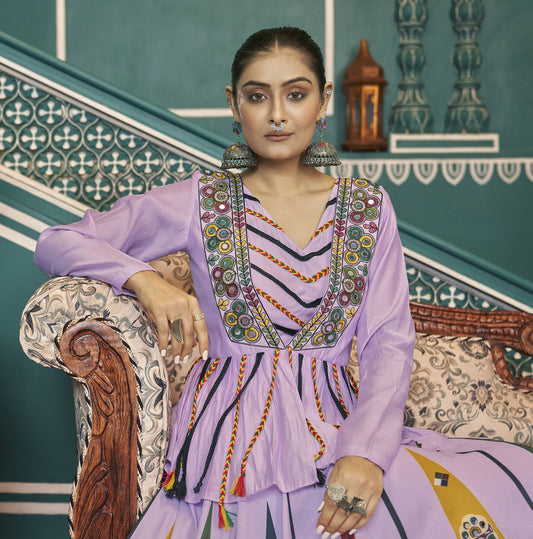Lavender Poly Maska Silk Mirror Embroidery Navratri Chaniya Choli