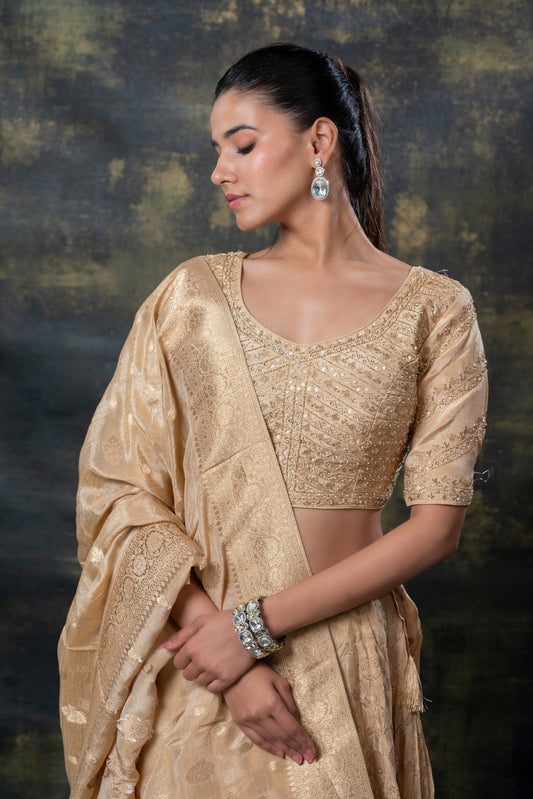 Blue Gajji Silk Printed And Embroidered Floral Kurta & Lehenga Set