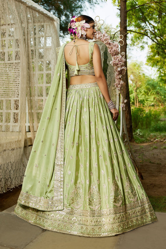Lime Green colour Chinnon Sequins embroidery Lehenga choli & Dupatta
