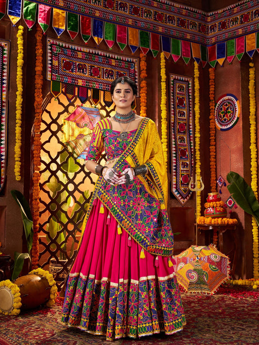 Multi Color Organic Cotton Aari & Foil Work Navratri Chaniya Choli