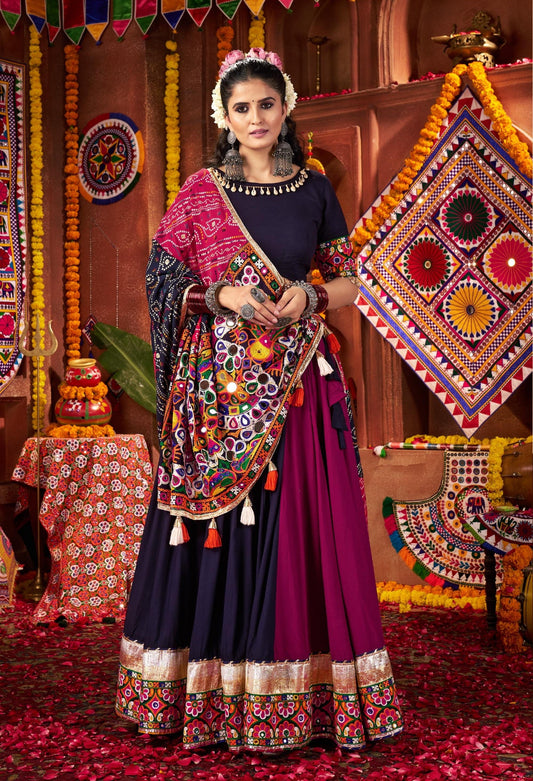 Black Rayon Mirror Gamthi Work Navratri Lehenga Choli