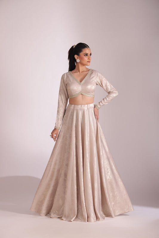 Jhalak Beige Embroidered Crepe Lehenga And Dupatta