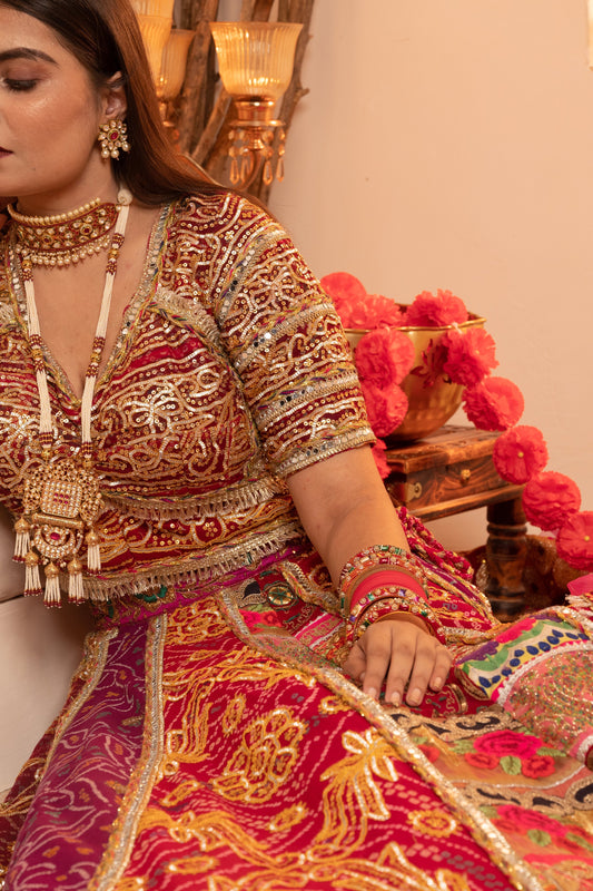 Pink Zarkan & Mirror Embroidery Net Bridal Lehenga