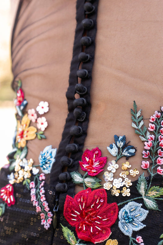 Verbena Red Satin & Tulle Three Piece Party Wear Set