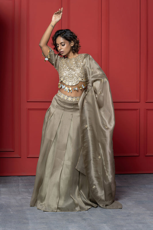 Greenish Copper Organza Mirror Lehenga SetRegular price From £270.71Regular priceUnit price / per-