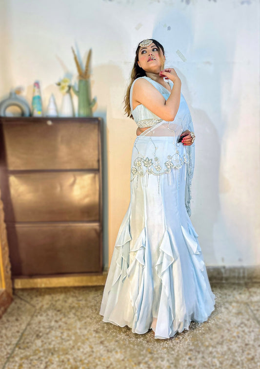 Ice Blue Georgette hand embroidered Cocktail LehengaRegular price From £231.12Regular priceUnit price / per-