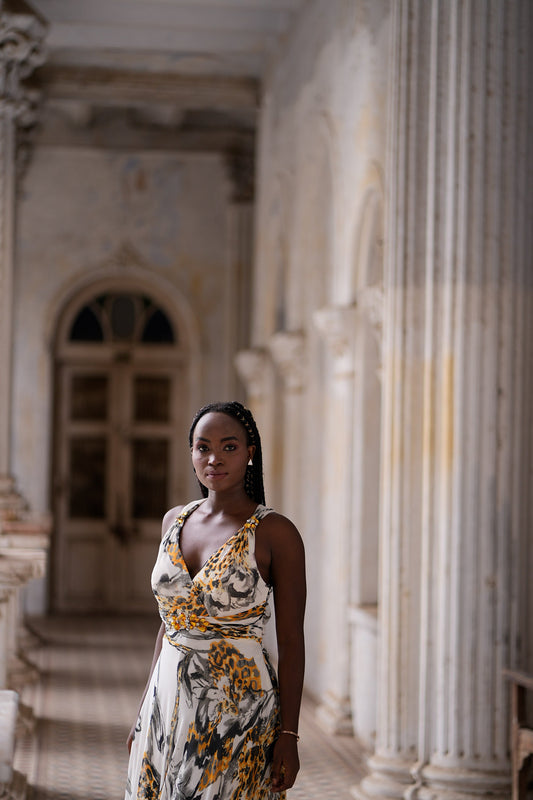 Yellow & White Satin summertime Animal Print Party Wear GownRegular price £317.79Regular priceUnit price / per-