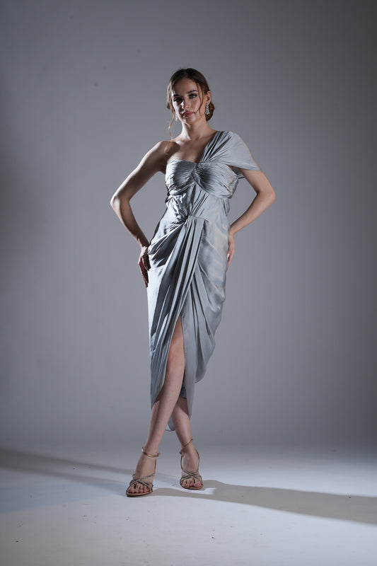 Frosty Slate Silver Tulle Bride's Sangeet Gown