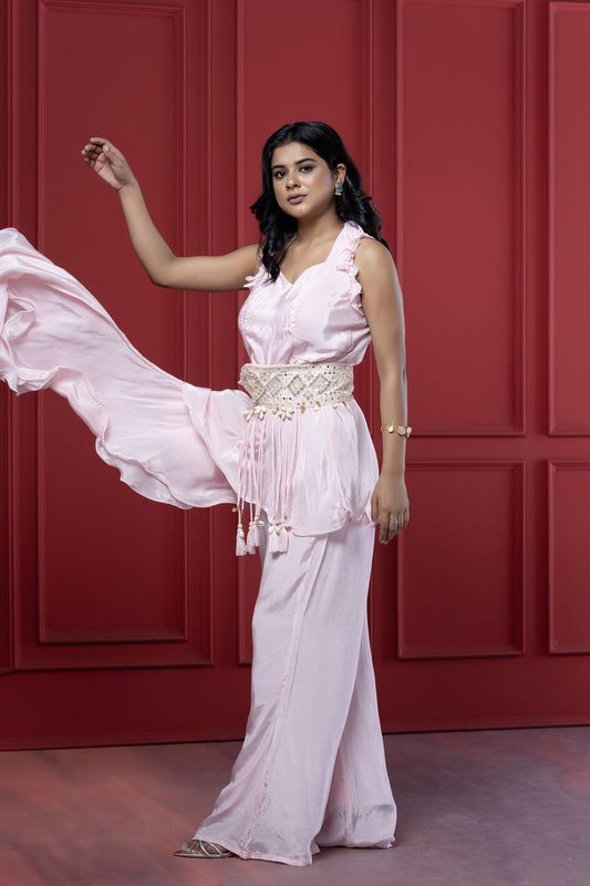 Baby Pink Indo Western Mirror & Shell's Palazzo Set