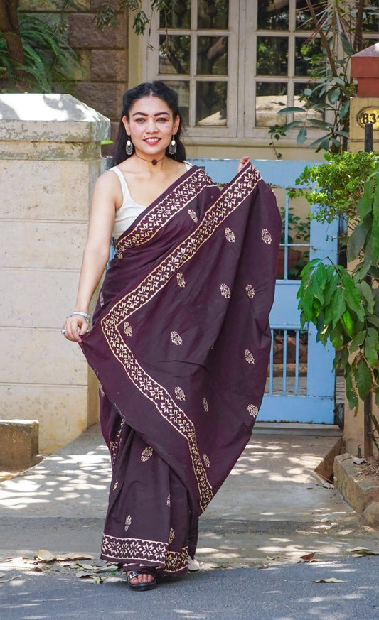 Poppins Collection - Brown Poppins Candy - Handblock Print Natural Dyed - Mulmul Cotton SareeRegular price £23.54Regular priceUnit price / per£58.85Sale price £23.54Sale