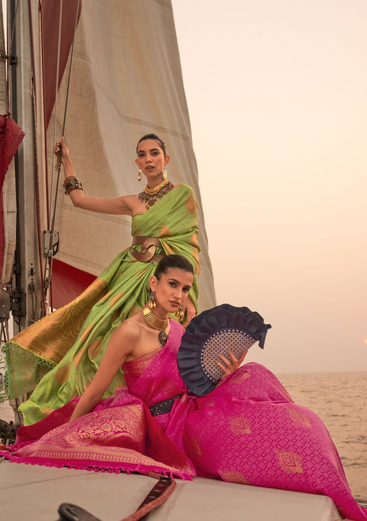 Light Green Kokoro Satin Two tone handloom weaving saree