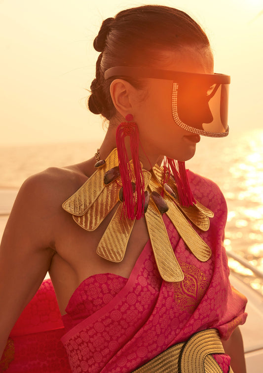 Copper Kalki Orchid Satin Tissue Handloom Saree