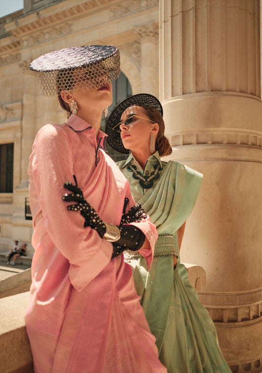 Mint Green Kyha Pure Satin Handloom Saree