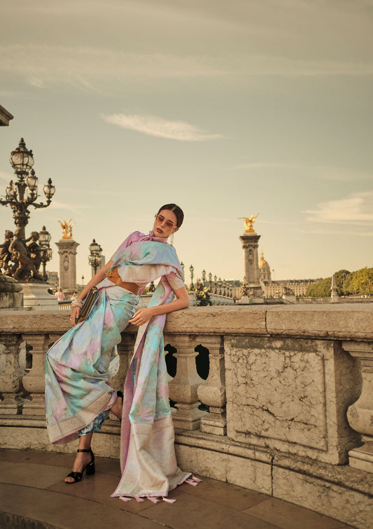 Light Blue Kyha Pure Satin Handloom Saree