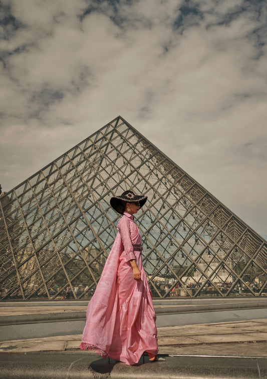 Pink Kyha Pure Satin Handloom Saree