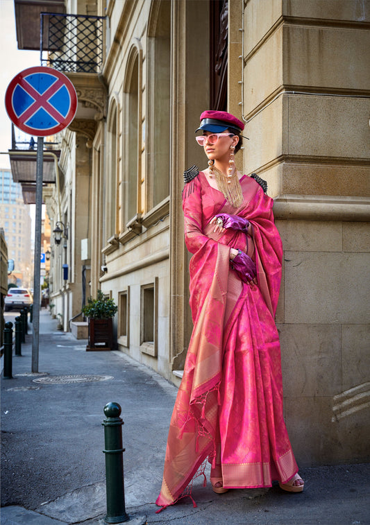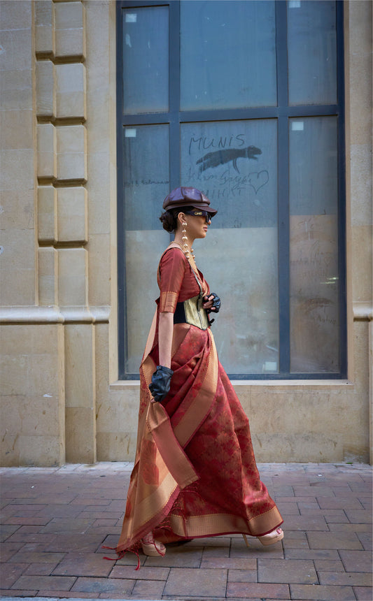 Sandy Beige Komet Printed Zari Handloom Tissue Saree