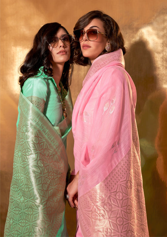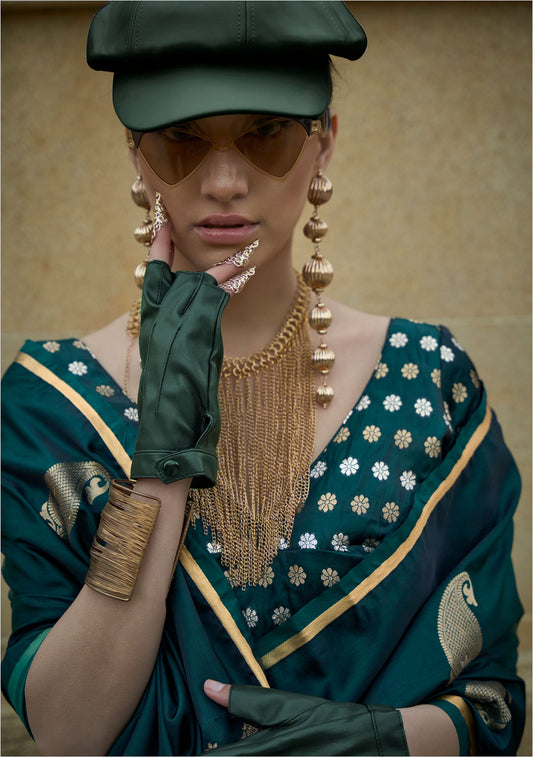 Green Kanthkala Pure Satin Handloom Silk Saree