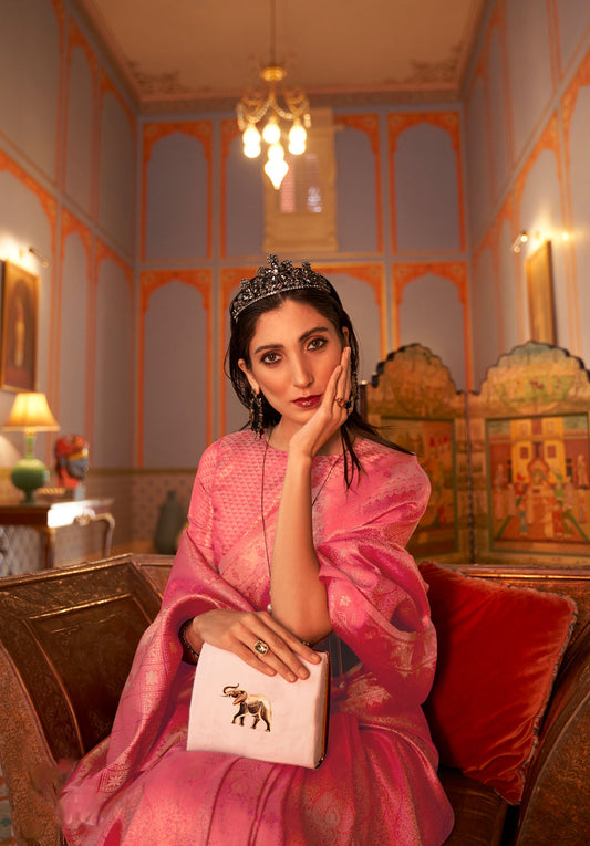 Pink Kanupama Silk Nylon Satin Woven Saree
