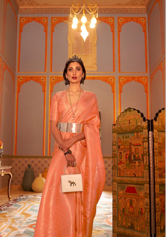 Peach Kanupama Silk Nylon Satin Woven Saree