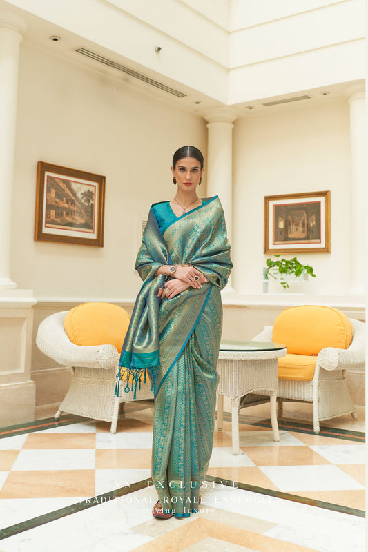 Teal Kumbhi Silk - Petals Handloom Saree