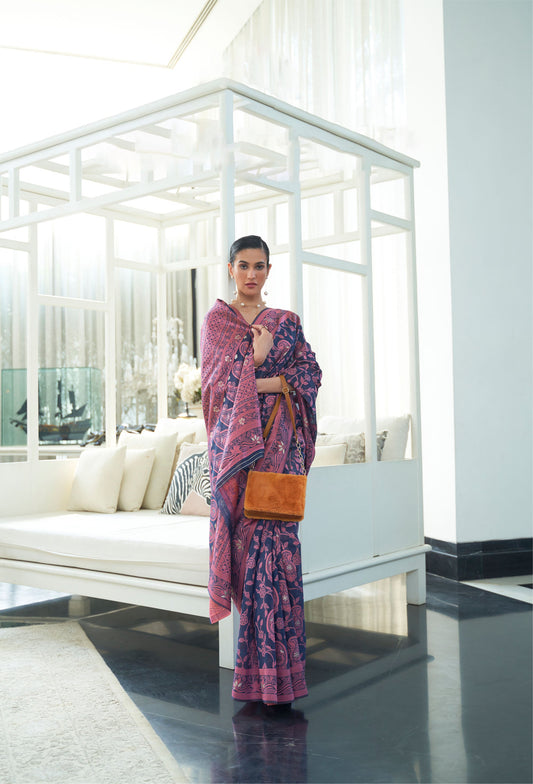 Navy Blue Kashidha Lucknowi Chikankari woven saree