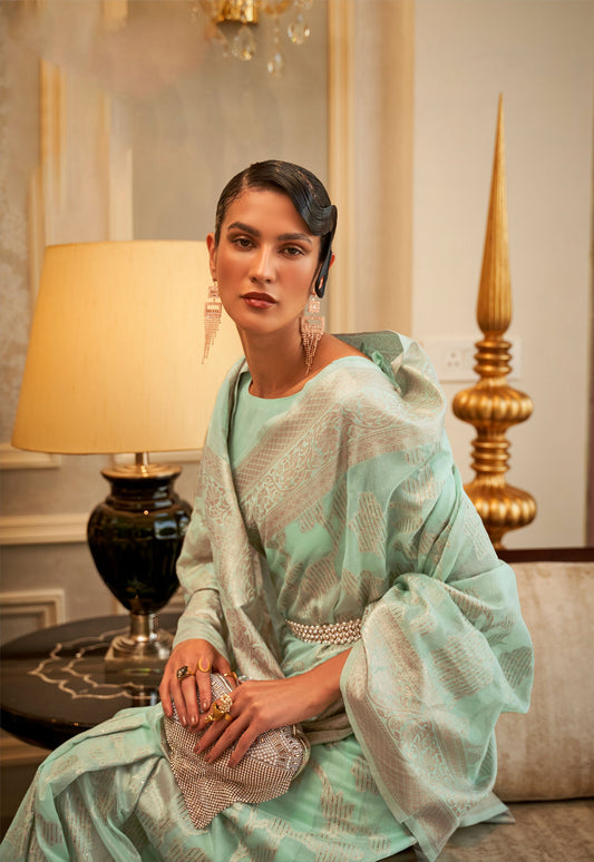 Green Kaazi Silk Kashmiri Modal Handloom Saree