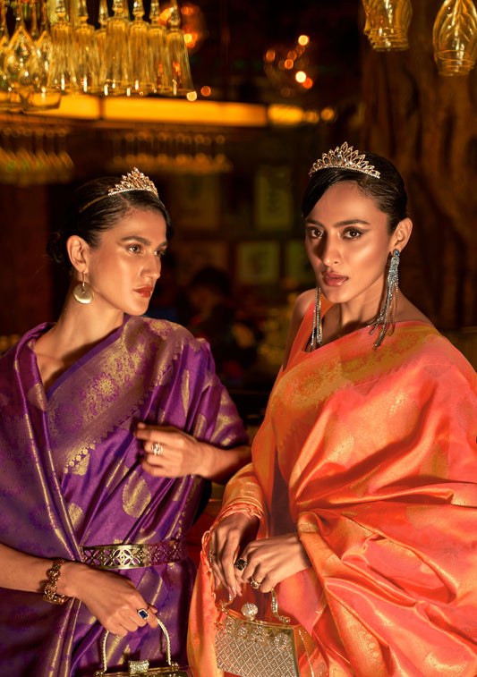 Orange Kihaarika Silk Handloom Sare