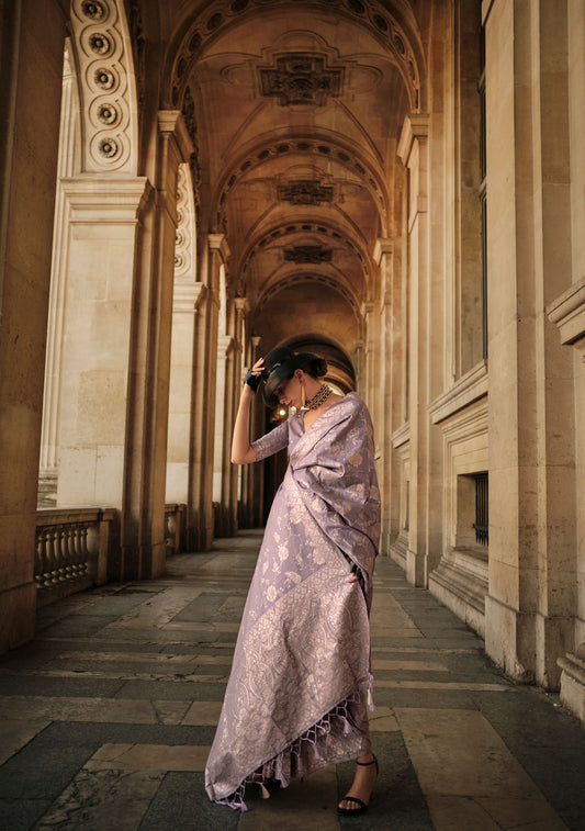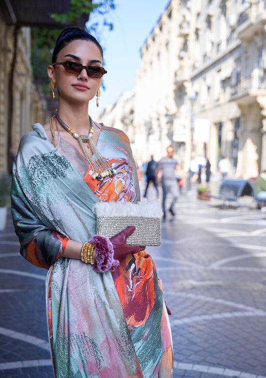 Grey Floral Klora Satin Crepe Digital Print Saree