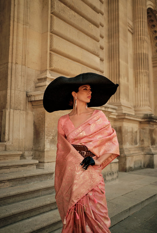 Peach Floral Klora Satin Crepe Digital Print Saree